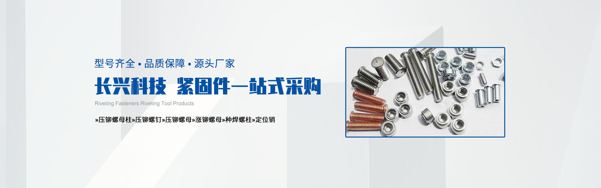 主要產(chǎn)品包括PEM壓鉚緊固件,面板緊固件(松不脫),不銹鋼卡式螺母,部分冷鐓螺母以及非標車制零部件,拉鉚螺母。手動鉚接工具,氣動鉚接工具。代理銷售美國雅固拉(Accuride)電子滑軌,美國索斯科(Southco)鎖具等等國內(nèi)外知名品牌。廣泛地應用于電子機箱,通信設備,機械設備,船舶制造、汽車制造、裝飾裝潢、電器儀表等各種行業(yè)。